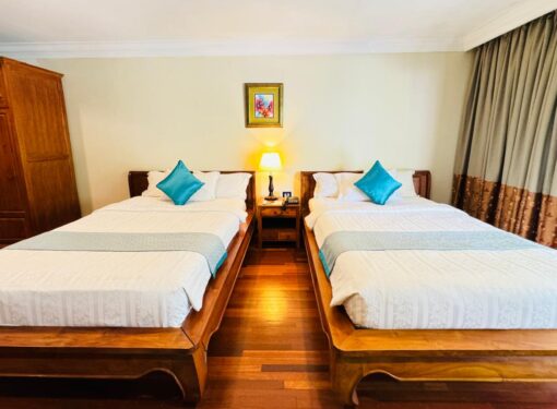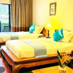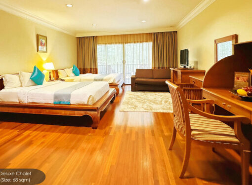 Indulge in our spacious, fully air-conditioned chalets, each with a private balcony offering stunning views of the garden, pool, or lake. With options for double queen beds, a single king bed, or twin single beds, these beautifully designed retreats provide a cozy atmosphere, perfect for small families seeking comfort and relaxation amidst natural beauty.