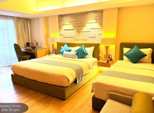 These modern, chic, and spacious chalets are perfect for those who appreciate simplicity and comfort, complete with full amenities. Located just a short stroll from the garden, poolside, and dining outlets, the Superior Chalet provides a peaceful retreat, offering total privacy away from the resort’s daytime activities.